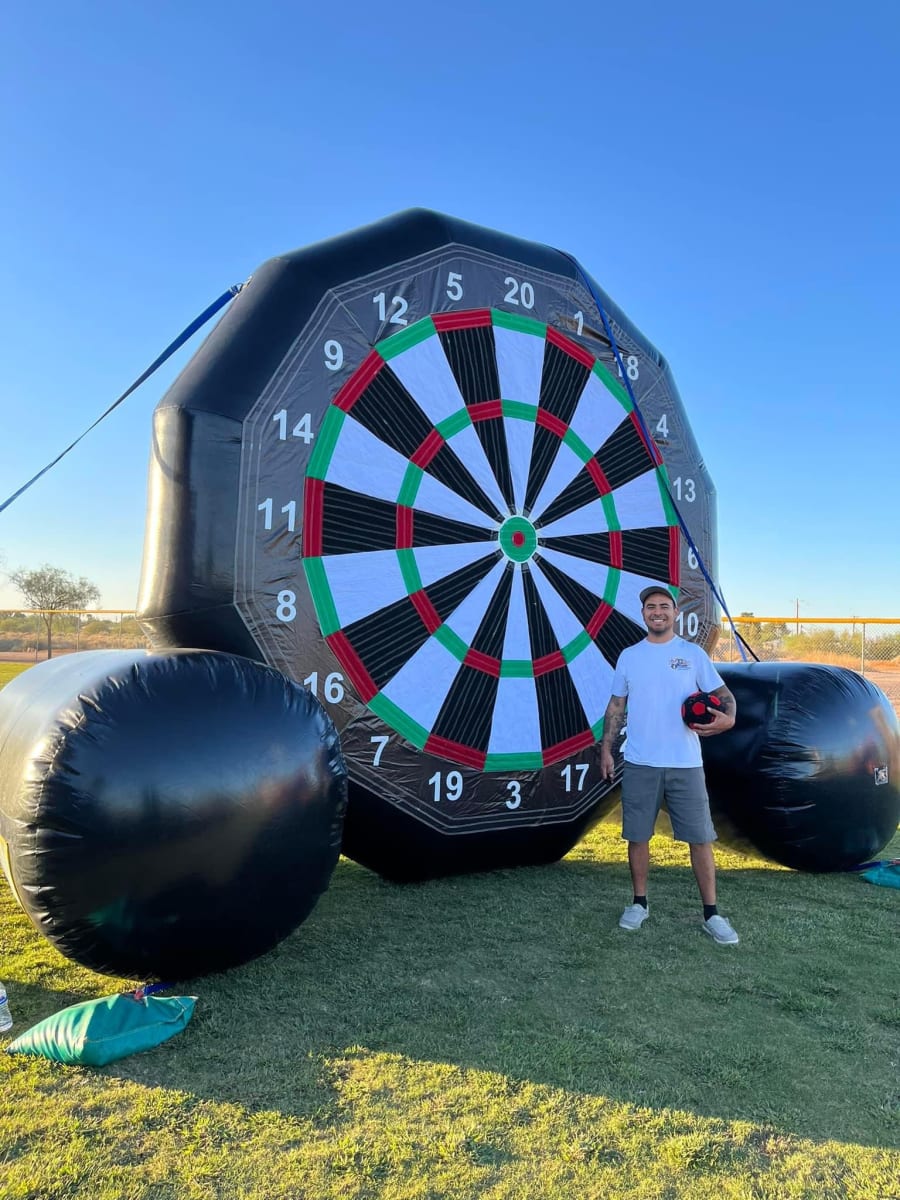 From birthday parties to corporate gatherings, our Inflatable Soccer Darts Game is a versatile and entertaining addition to any occasion. Available for delivery in Casa Grande and Surrounding Areas, this game will be the highlight of your event and create lasting memories for all attendees. 🎉🎈