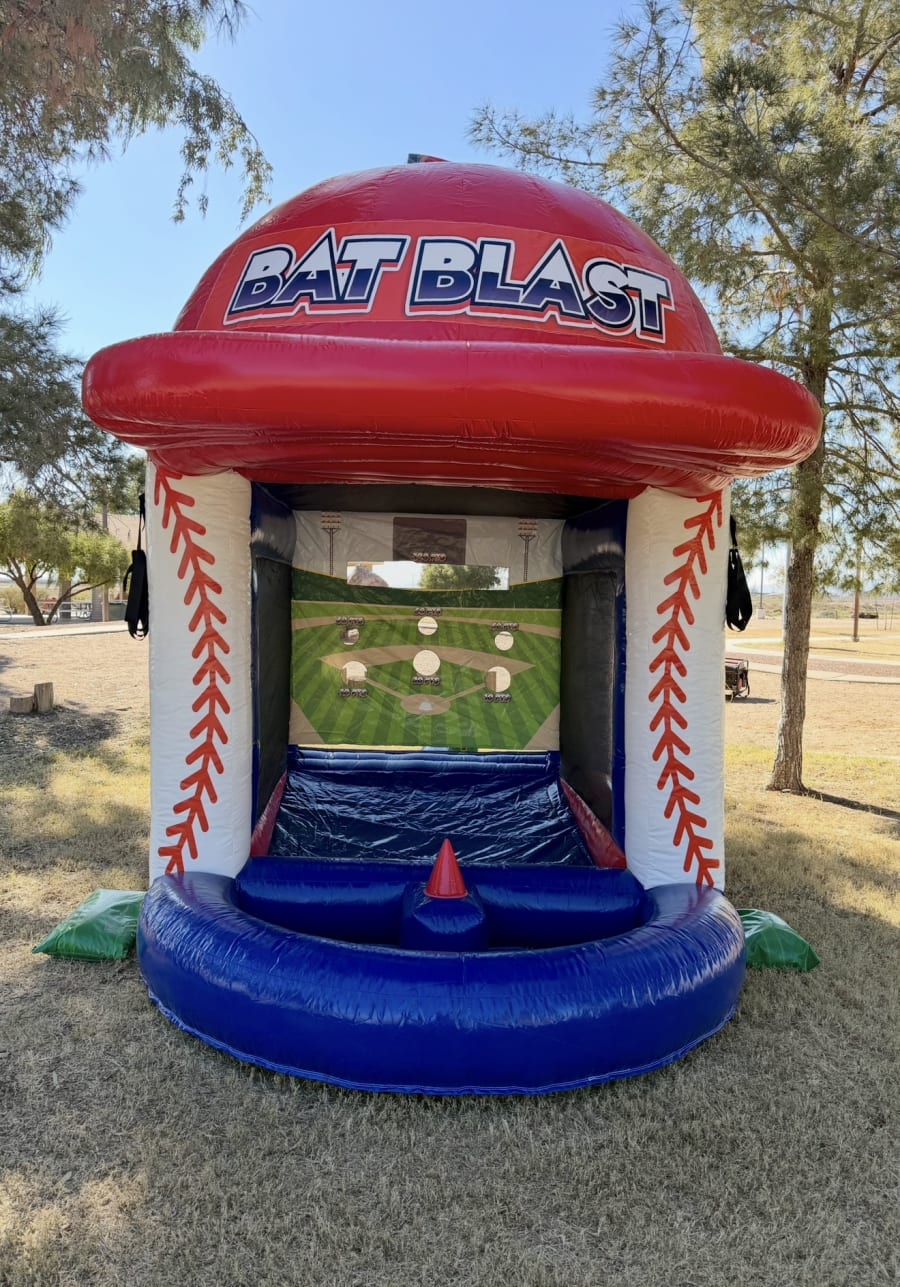 Bat Blast is an inflatable baseball game that delivers instant fun for kids, teens, and adults. Fast-paced and crowd-pleasing, this game features a floating ball you hit to score points in multiple targets. Balls and bats are included. A protective guard keeps players safe and spectators secure. Perfect for parties, corporate events, school carnivals, backyard celebrations, and for any baseball fan! 🎉